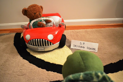 Despite all the headaches associated with having a car as my stuffie friends kindly reminded me, I still decided to go ahead with learning how to drive on my new, red BeeMV convertible that I recently won on the Price is Right. So my mom signed me up for driving lessons at S.P. Driving School.