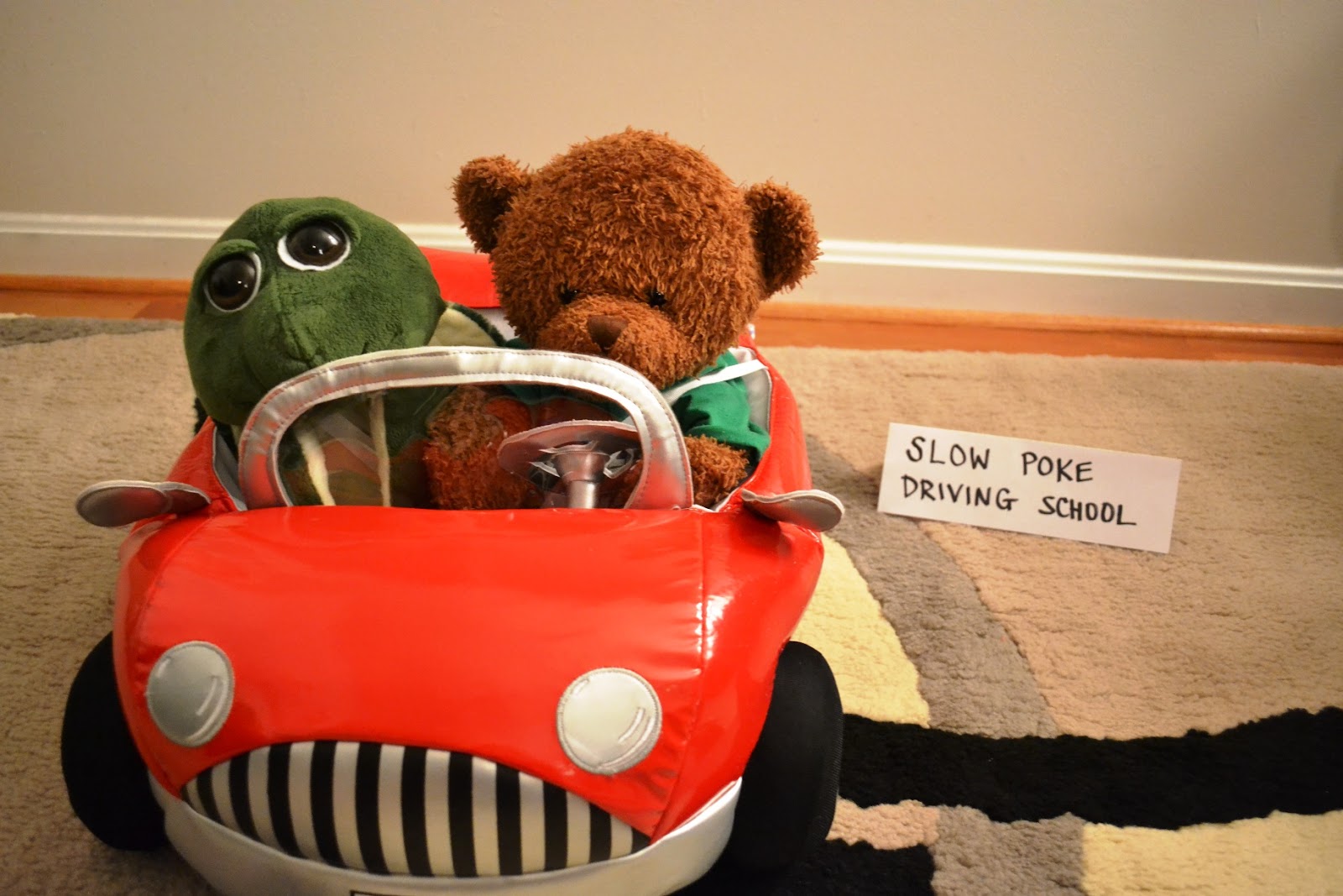 Despite all the headaches associated with having a car as my stuffie friends kindly reminded me, I still decided to go ahead with learning how to drive on my new, red BeeMV convertible that I recently won on the Price is Right. So my mom signed me up for driving lessons at S.P. Driving School.