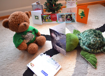 Hi everyone! I’m just waiting here for Miss Feathers to deliver the mail. She has had many deliveries lately with the holiday season.