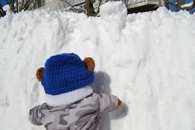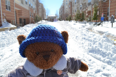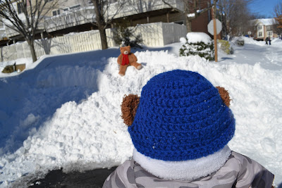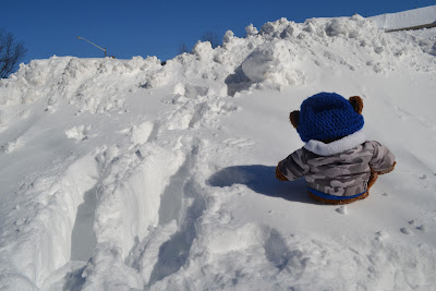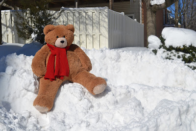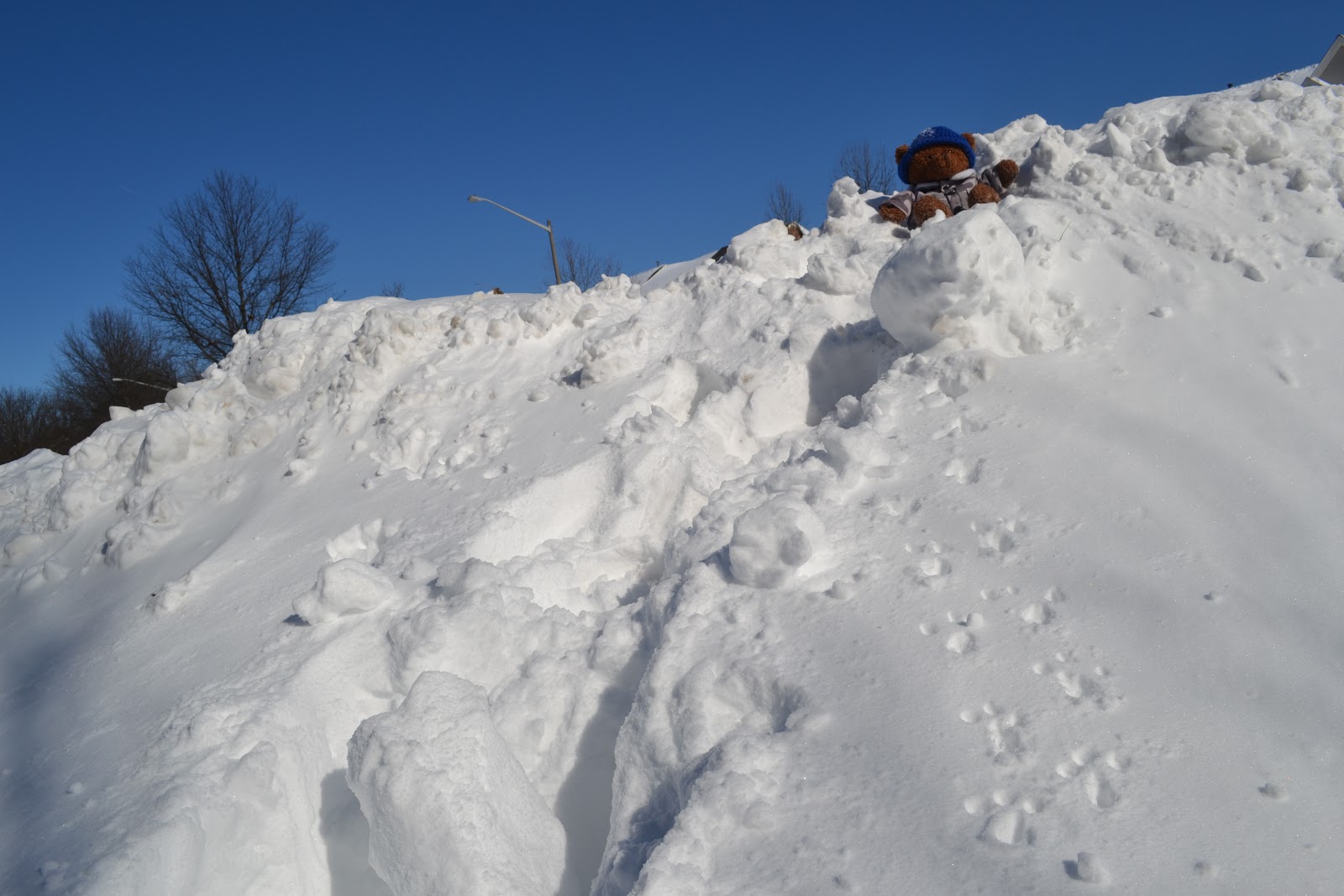 All that mountain climbing was making me hungry so I decided to turn around and go home. But then I saw a familiar figure sitting on a snowbank. It was brown. It was big. It was…