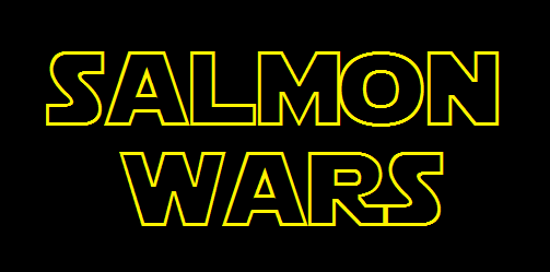 Look, there’s R2D2, C3PO, Chewbearca, an X-Wing Fighter, the Millenium Fish, and a Salmontrooper!