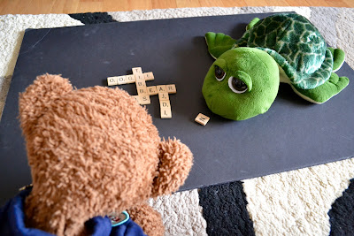 Several months ago, back in December last year, Sandy sent Ooogie some Scrabble letters and instructions for completing a puzzle. I think he might be close to finishing it! Let’s check in with him for an update.