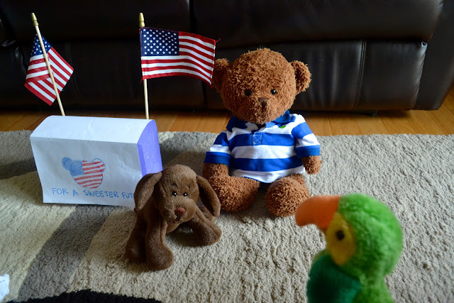 Wow, that was a really refreshing nap! Is Ooogie finished reading the roll call of states yet? Is it my turn to give my acceptance speech as the stuffie nominee for President of the United States of America?