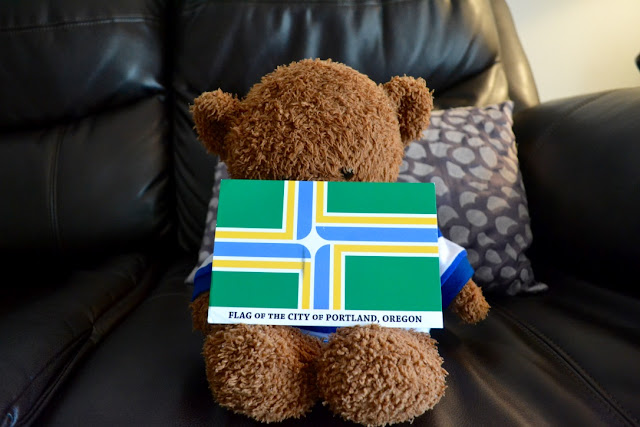 I got this cool postcard from Little Fox. It’s a flag of the city of Portland, Oregon. He writes, “Happy Birthday!” Thanks Little Fox!