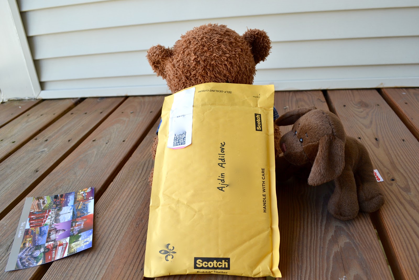 Yes, it’s a London postcard from Sandy after his Stuffie Tours gig as a tour guide. It’s a really great postcard, with a nice photo collage on it. Thanks Sandy! You did a great job as tour guide. I’m sure Little Fox had a terrific time.
