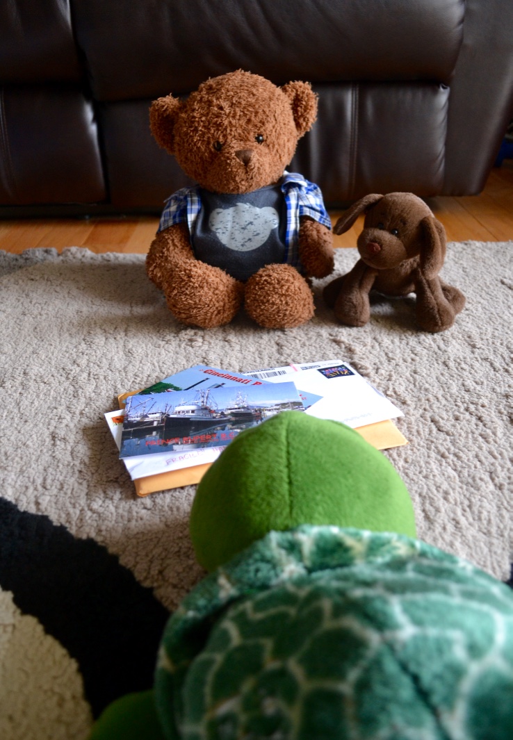 The next postcard I received was from two little bears… yes, Jerry and Ben! They accompanied their Papa on a work trip, but it was a leisure trip for them. That’s how to live, isn’t it? Let the humans do all the work and stuffies just have fun.