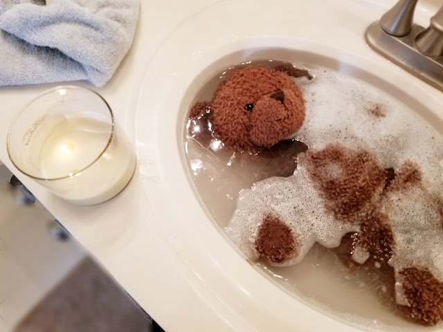 But with the bubbles and all, it’s not so bad. It’s beary relaxing actually. Look at the water – I was really dirty.