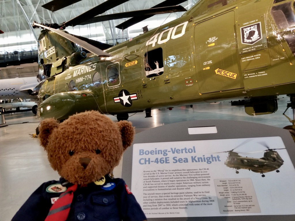These are actual planes and helicopters that have flown real-life rescue missions, not replicas. This is the Bell UH-1H Iroquois.