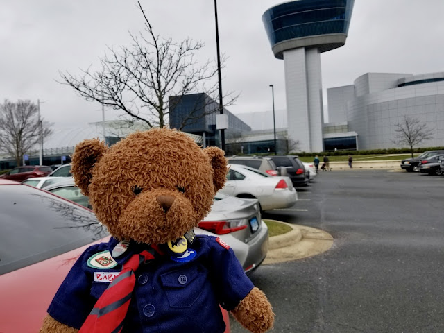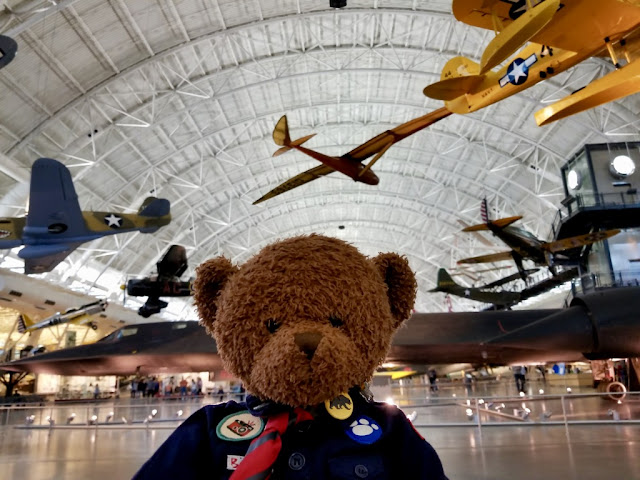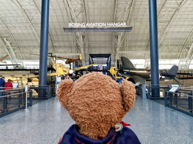 As I walked into the lobby, I saw this cardboard astronaut cut-out. I began to get beary excited. Maybe I would be able to find a space shuttle here? I still do dream of being an astrobear, you know.