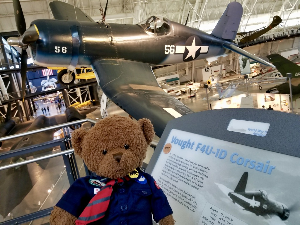 To the right of that is the Vought F4U-1D Corsair handing suspended from the air.
