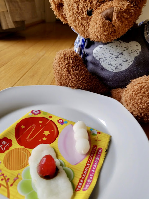 Remember the red thing we put in the freezer? Well, now it’s time to take it out and flip it over. It’s a strawberry mold! The three small balls are skewered onto a small stick, and then I add a caramel syrup on top.