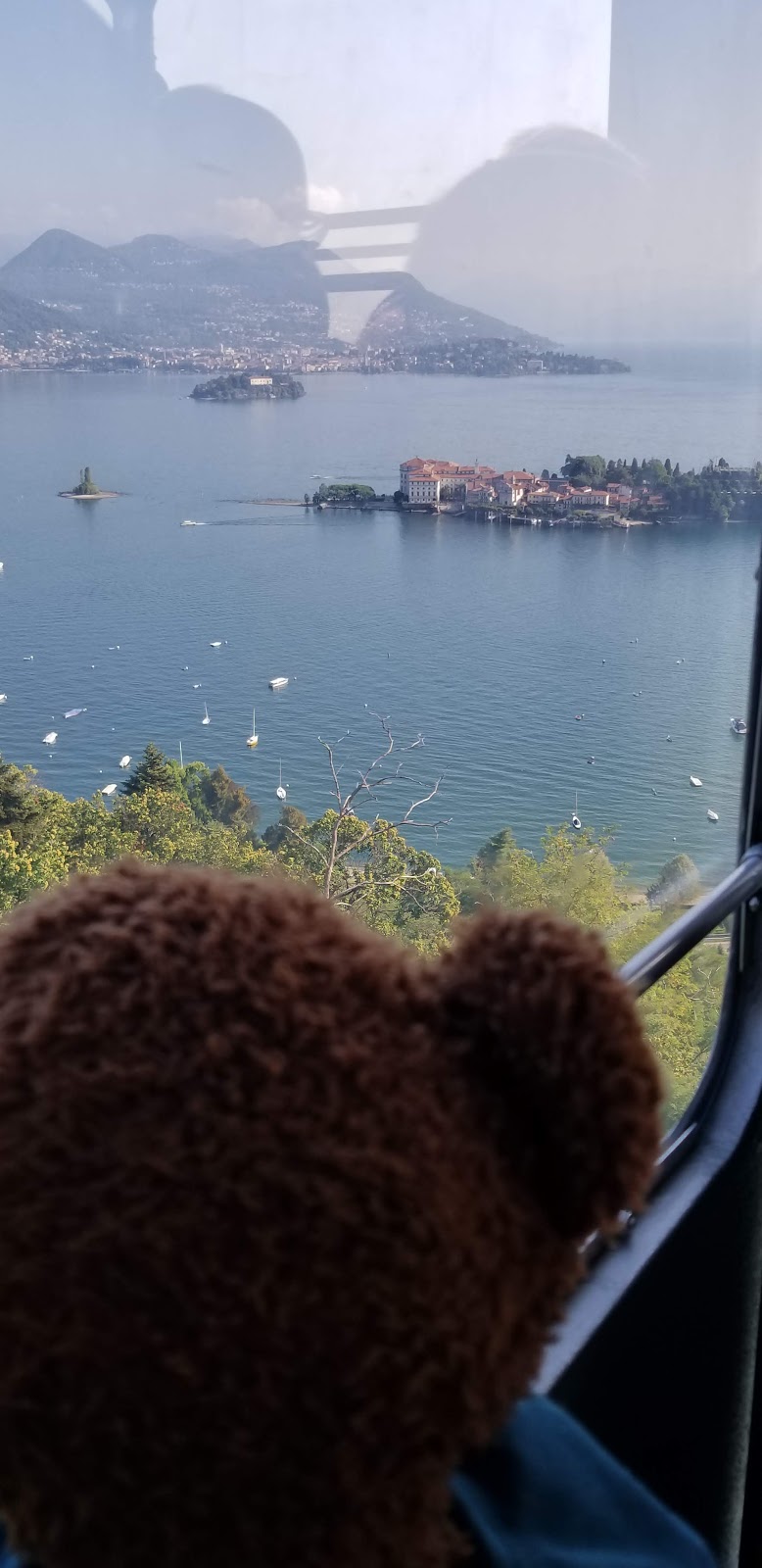I am at the top of this mountain called Mottarone now. It’s a bit foggy but you can see the islands in the background.
