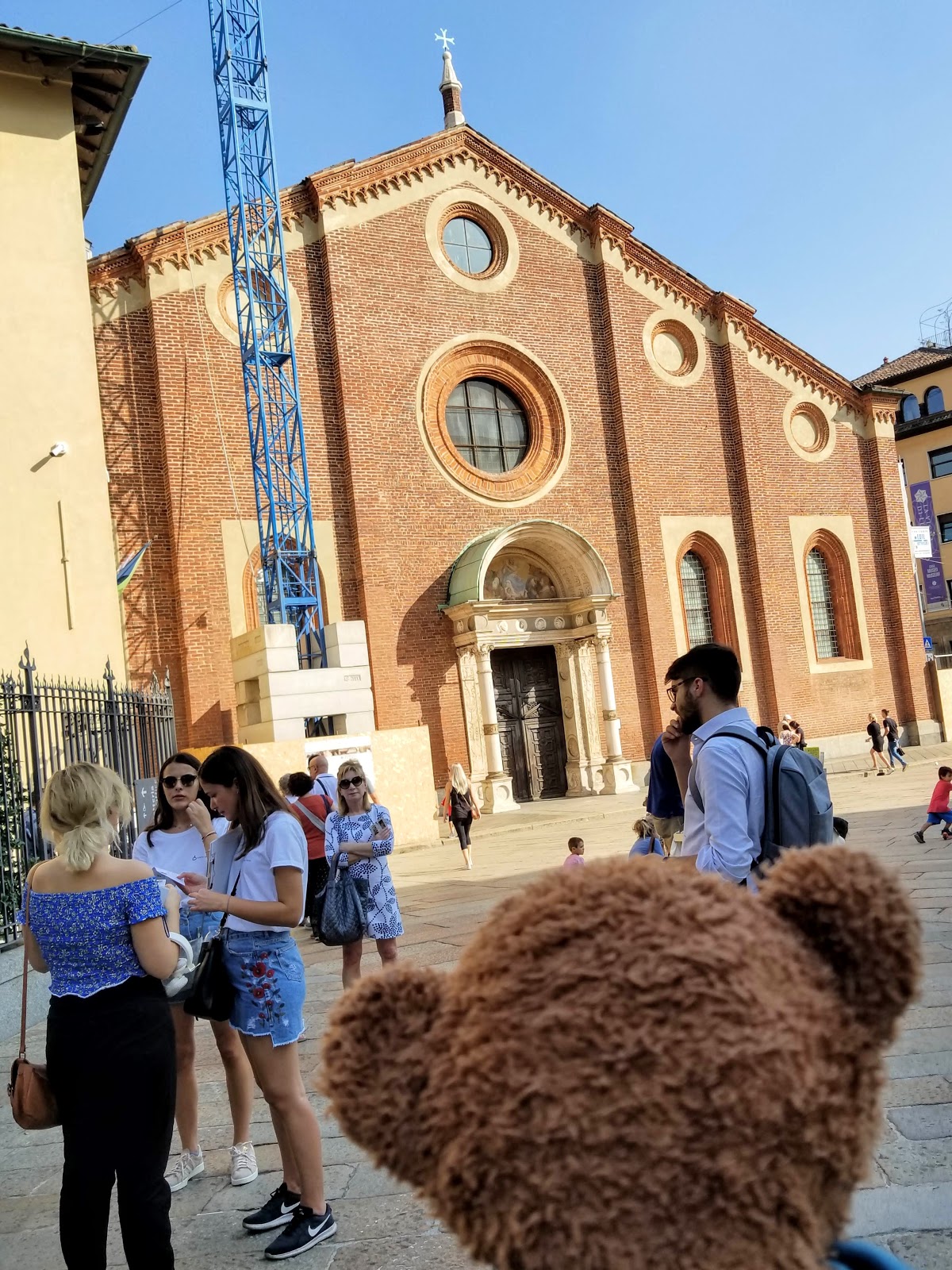 So here I am standing outside of the Santa Maria delle Grazie church. Supposedly, there is a beary famous mural painting inside. Can you guess what it is?