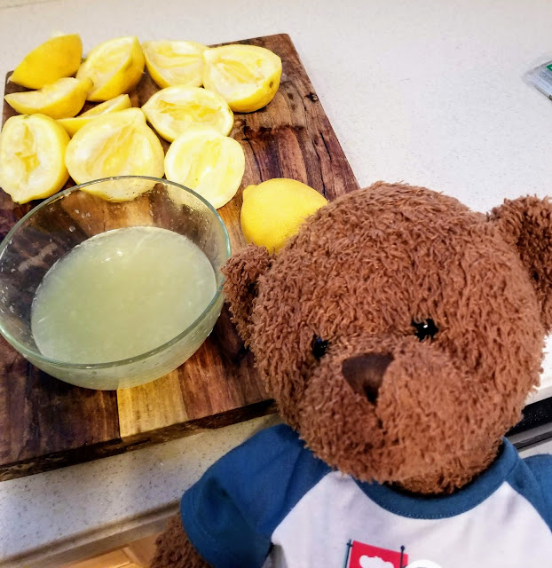 First, we are going to juice the lemons. Actually, I am going to delegate this juicing job to someone else and just watch.