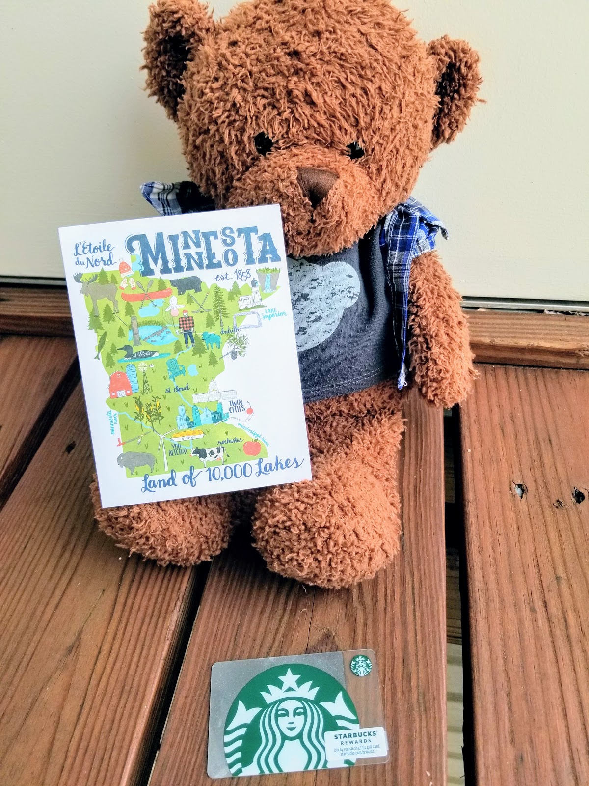 I also received a card with a Minnesota design on it from Jerry and Ben who recently hosted the annual Halloween costume contest. The prize was a Starbucks gift card! Thank you beary much – I think I will get some hot chocolate and a cookie.
