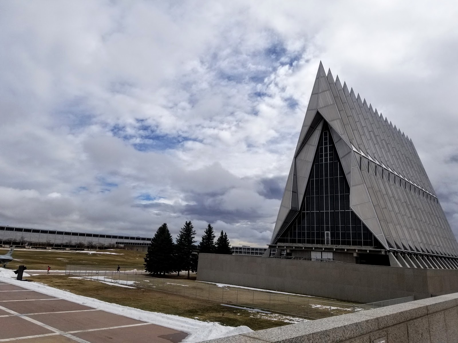 This is the Cadet Chapel on campus which houses many smaller chapels of several different religions and faiths. It is constructed of 17 spires. Unfortunately, it was closed for renovation. (Why am I not in this photo?)