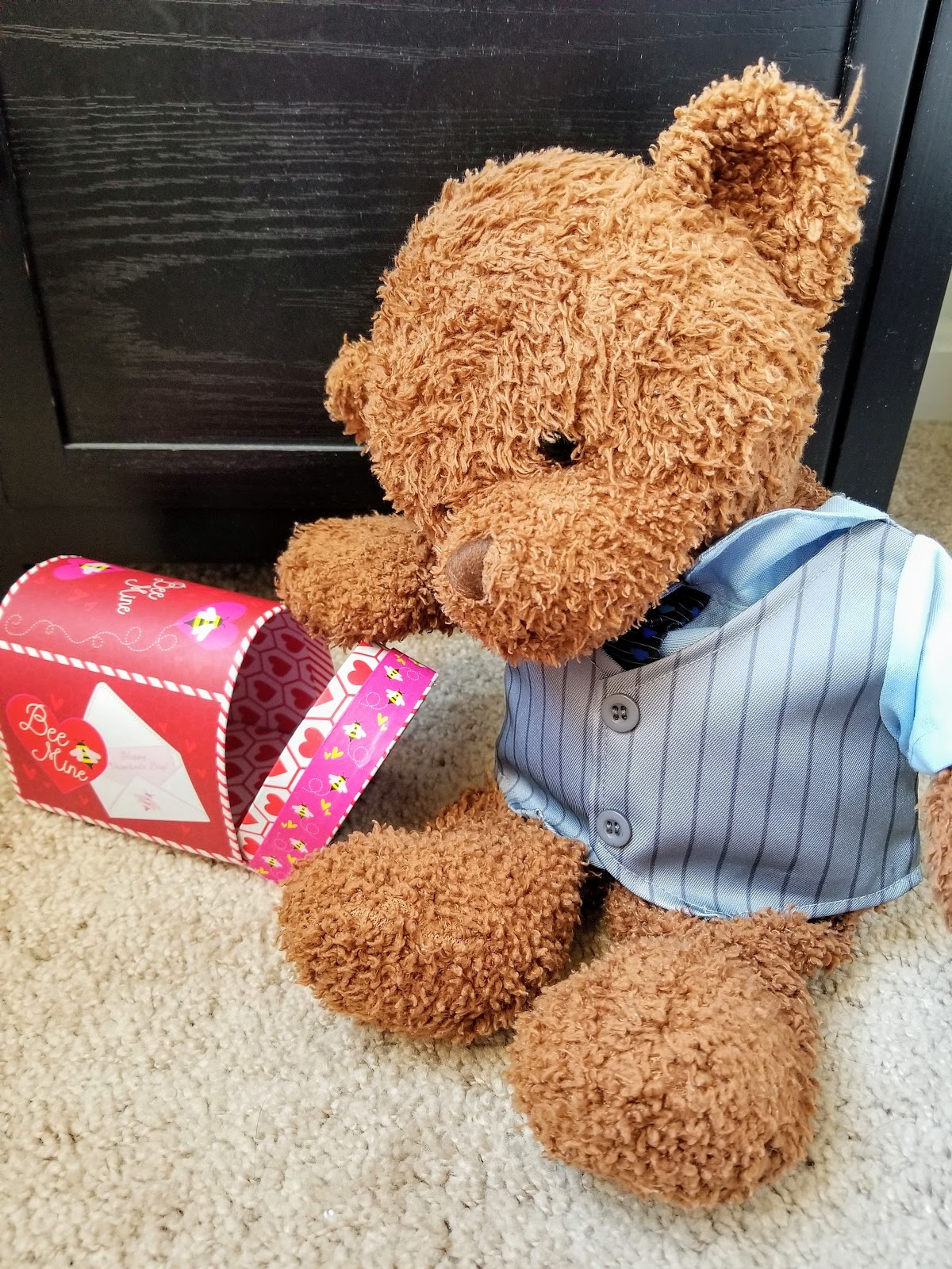 And here I have a mailbox just for Valentine’s Day cards. It says “Bee Mine” – isn’t that clever?