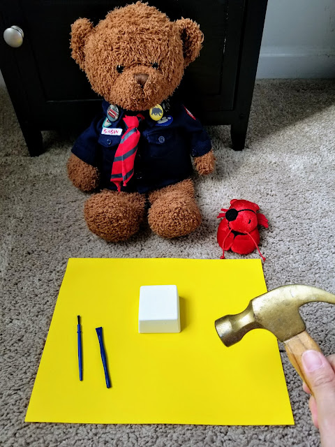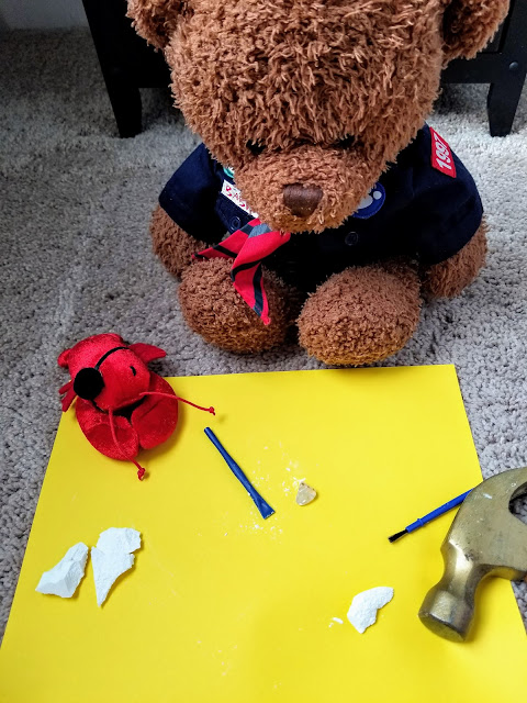 Everything we need is in this kit, except for a hammer. Good thing my mom has one. She is also going to help with the hammering since it weighs more than I do.
