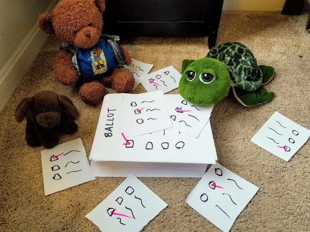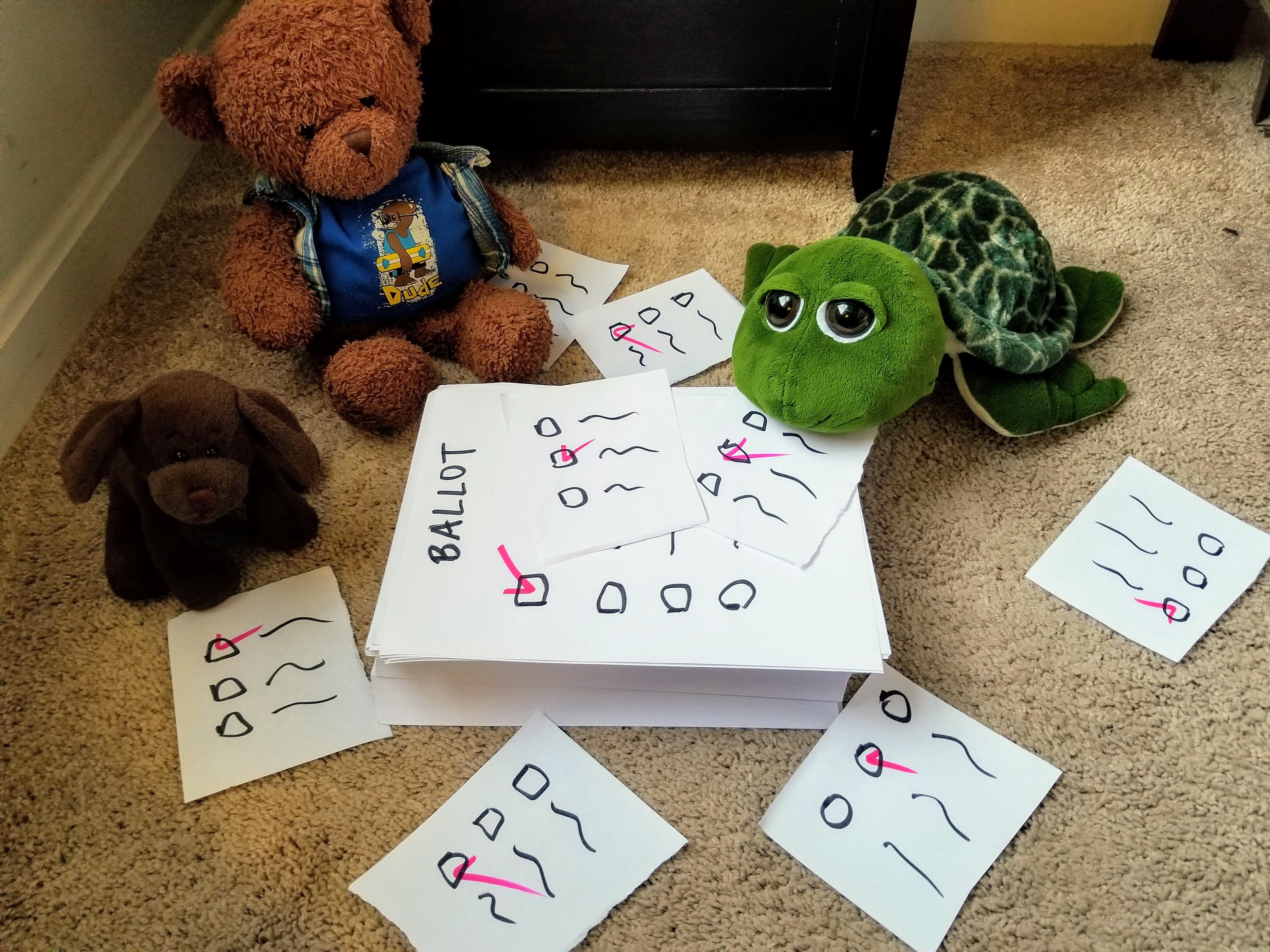 After a long and thorough process, election officer Ooogie is about to finish the final ballot count from the 2016 Presidential Election. In case you forgot, I ran for President with my running mate Parker.
