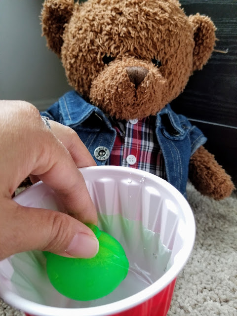 After that, it’s time to dunk this mold in a cup of water. My mom is going to help out so I don’t get soaked!