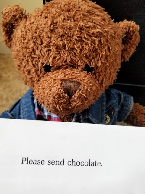 And it says “Please send chocolate” on the back. Oh no, things must be very terrible!