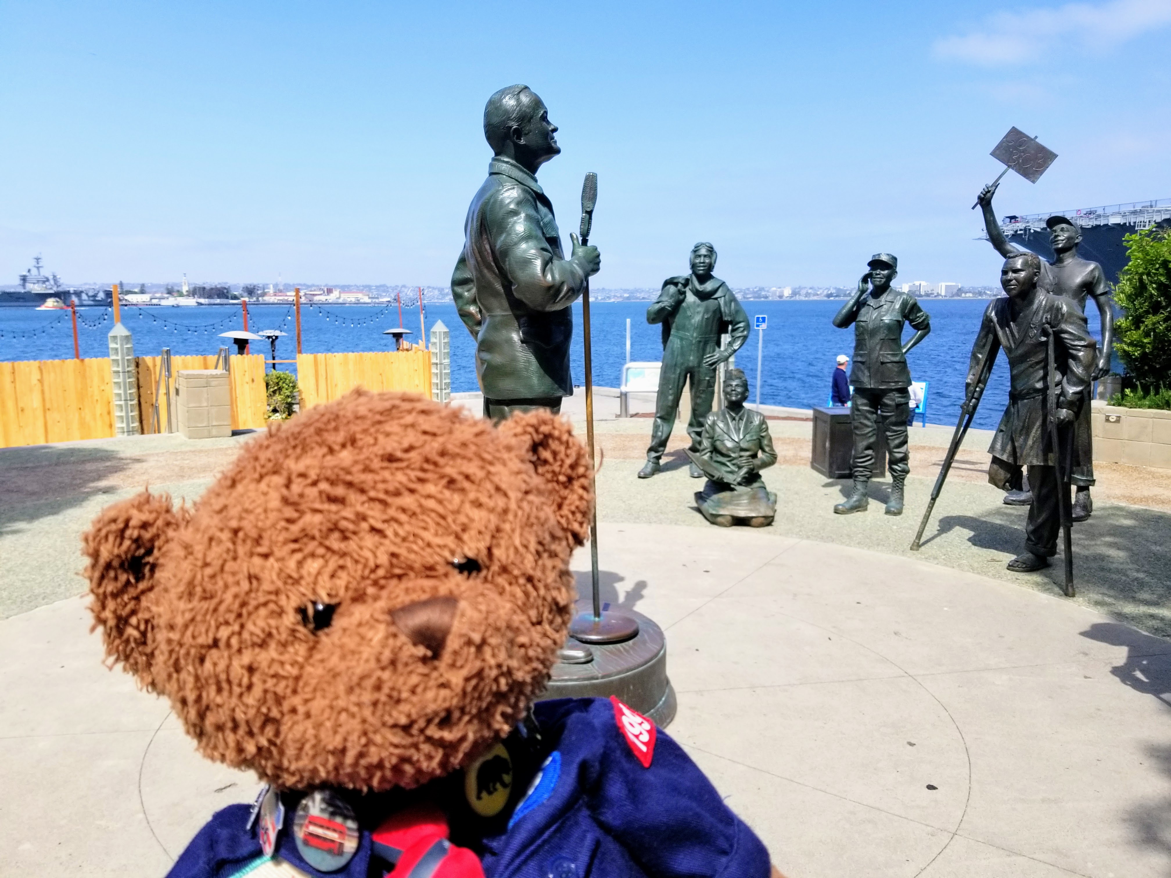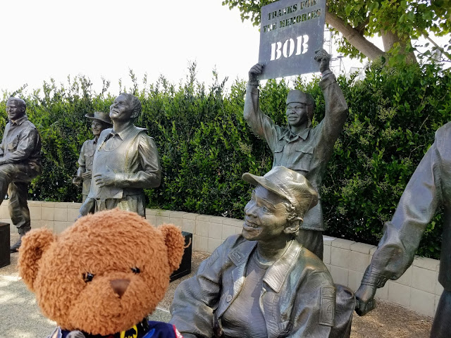 Here I am at the Bob Hope Memorial in San Diego. Bob Hope was a wonderful and talented entertainer who loved performing for the troops. He did a lot of USO Tours around the world to lift the morale of troops stationed abroad.