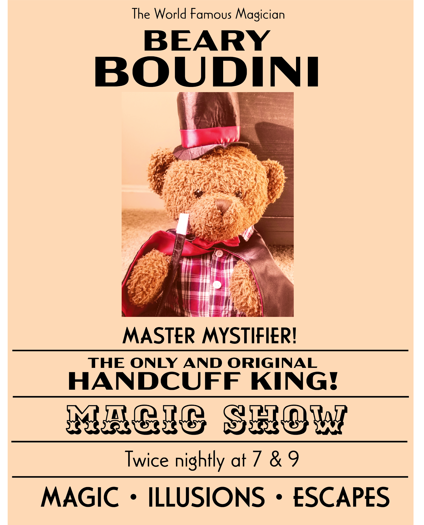 Uncategorized Beary Boudini poster By lifeisbearygood - July 25, 2021 0 I’m getting ready for my first show – check out the promotional poster! 😀